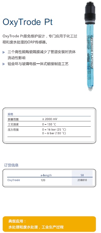 OxyTrode Pt是免維護(hù)設(shè)計(jì),,專門應(yīng)用于化工過程和廢水處理的ORP傳感器。