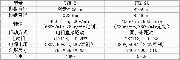 TYM-2金相試樣預(yù)磨機 •雙工位,全自動金相拋光研磨機,電機直接驅(qū)動磨盤 •提高試樣拋光制備功效,金相切片研磨機,進行試樣預(yù)磨。 •廣泛需求分析,金相樣品自動研磨機,調(diào)研和采集多方面使用人員的意見及要求設(shè)計。 •適應(yīng)更多種材料預(yù)磨的需要,金相研磨機價格,磨盤直徑大于國內(nèi)同類產(chǎn)品。 TYM-2A金相試樣預(yù)磨機 •雙工位,金相拋光研磨機,同步帶驅(qū)動磨盤 •提高試樣拋光制備功效,金相研磨機,進行試樣預(yù)磨。 •廣泛需求分析,金相試樣自動研磨機,調(diào)研和采集多方面使用人員的意見及要求設(shè)計。 •適應(yīng)更多種材料預(yù)磨的需要,,磨盤直徑大于國內(nèi)同類產(chǎn)品。 技術(shù)參數(shù):