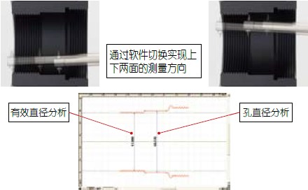 裝配雙錐面測針,實(shí)現(xiàn)垂直方向(上/下)連續(xù)測量,粗糙度儀時代,所獲取的數(shù)據(jù)實(shí)現(xiàn)簡單分析以往難以測量的內(nèi)螺紋有效直徑。測力可在FORMTRACEPAK軟件中設(shè)置。無需調(diào)整配重。