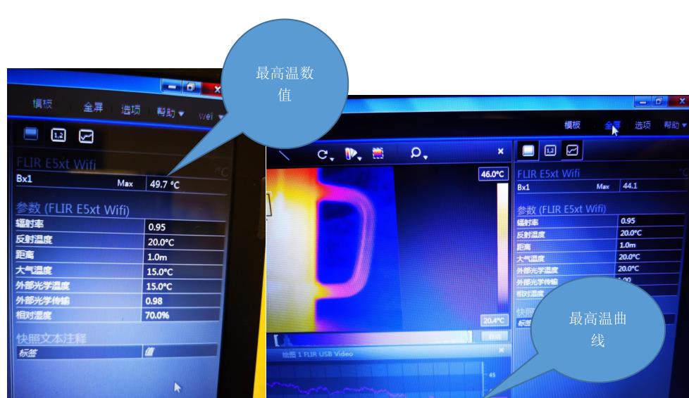 高溫度曲線。同時在右側數(shù)據(jù)區(qū)會看到實時的區(qū)域最高溫數(shù)據(jù)。
